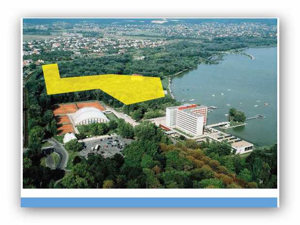 Das "Z" –förmige Baugrundstück liegt im Osten der Stadt in einer ruhigen Bucht unmittelbar am Balaton an der neuerbauten Uferpromenade. Es grenzt an Kurhotels auf der nördlichen und südlichen Seite und es hat Straßenverbindung auf der Westseite.